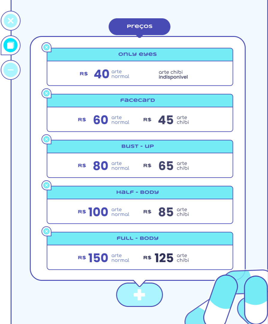 — nesta página, você encontrará todas as informações sobre encomendas em geral, incluindo: o que eu faço e não faço, tipos de encomenda disponíveis, valores e outras informações importantes.